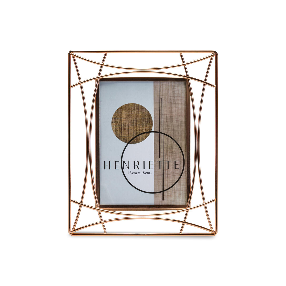 Cornice portafoto firmata Henriette, dal design moderno e geometrico in metallo con finitura in metallo dorato.