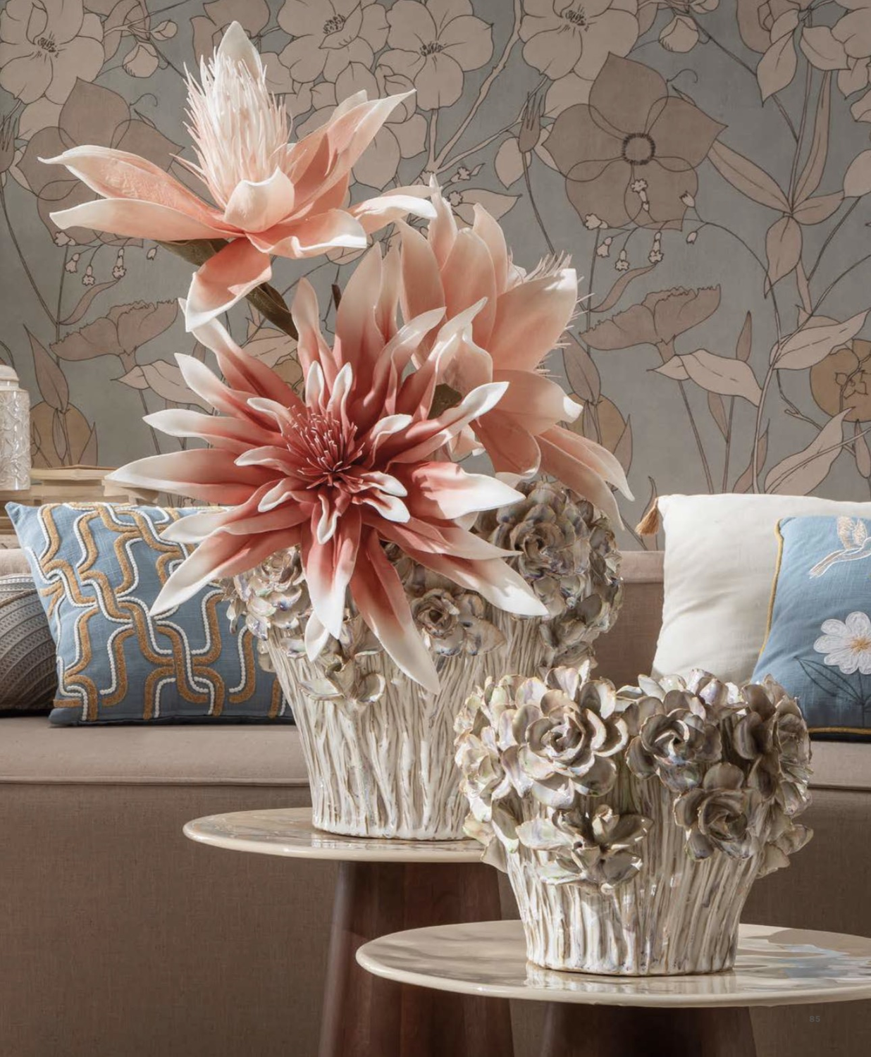 La sua superficie scolpita, ispirata ai fiori in piena fioritura, crea un effetto materico raffinato che richiama la delicatezza delle rose e la naturalezza delle texture botaniche.