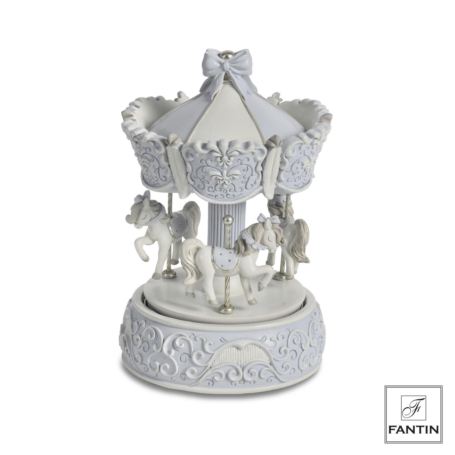 La Giostra Carillon Azzurra Fantin (Cod. 706A) è un oggetto decorativo romantico e raffinato, perfetto per arricchire camerette, nursery e ambienti dedicati ai più piccoli.
