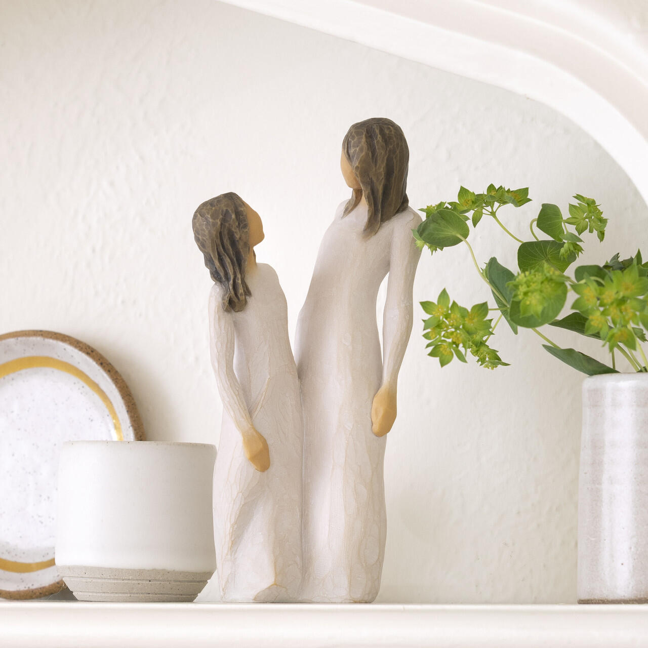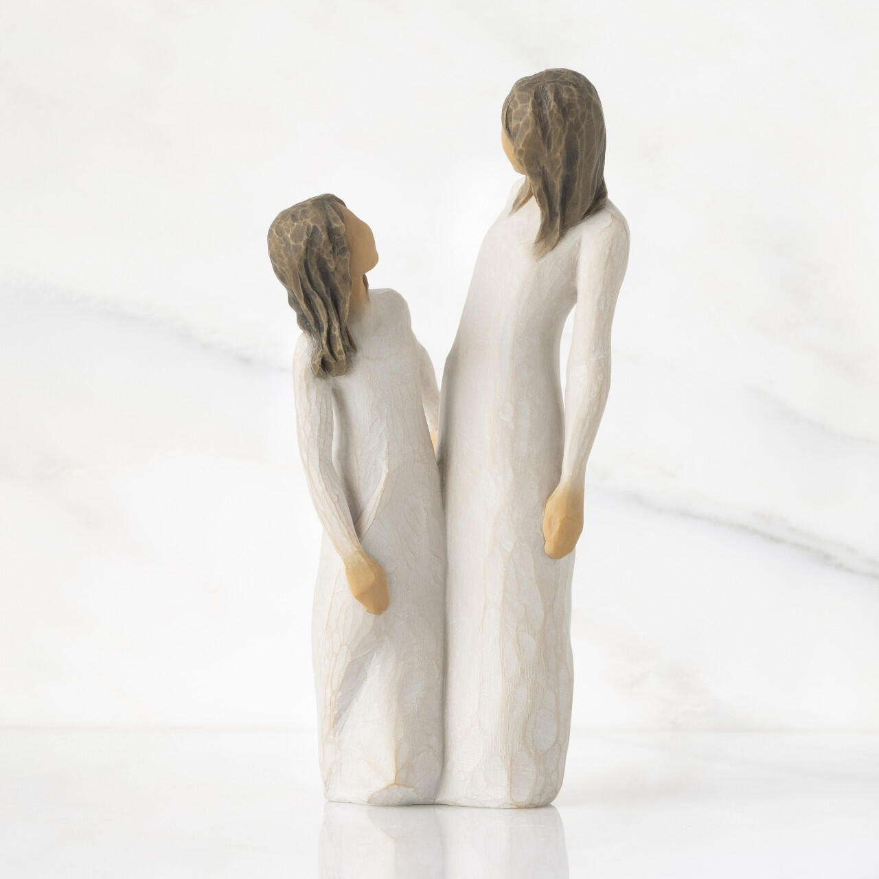 Confezione: Include la scatola originale Willow Tree e un cartoncino interno per dedica con la scritta: "The enjoymet of each other's company" (Il piacere della reciproca compagnia).