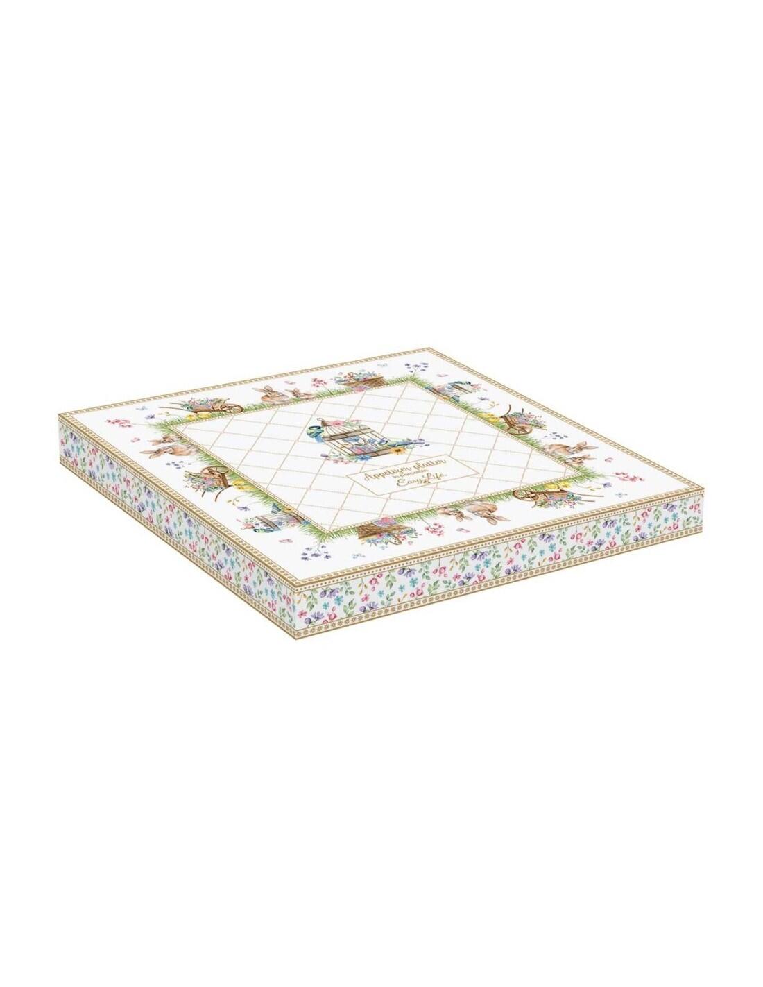 Il design primaverile, caratterizzato da illustrazioni delicate e dettagli floreali, dona un tocco fresco e raffinato alla tavola.