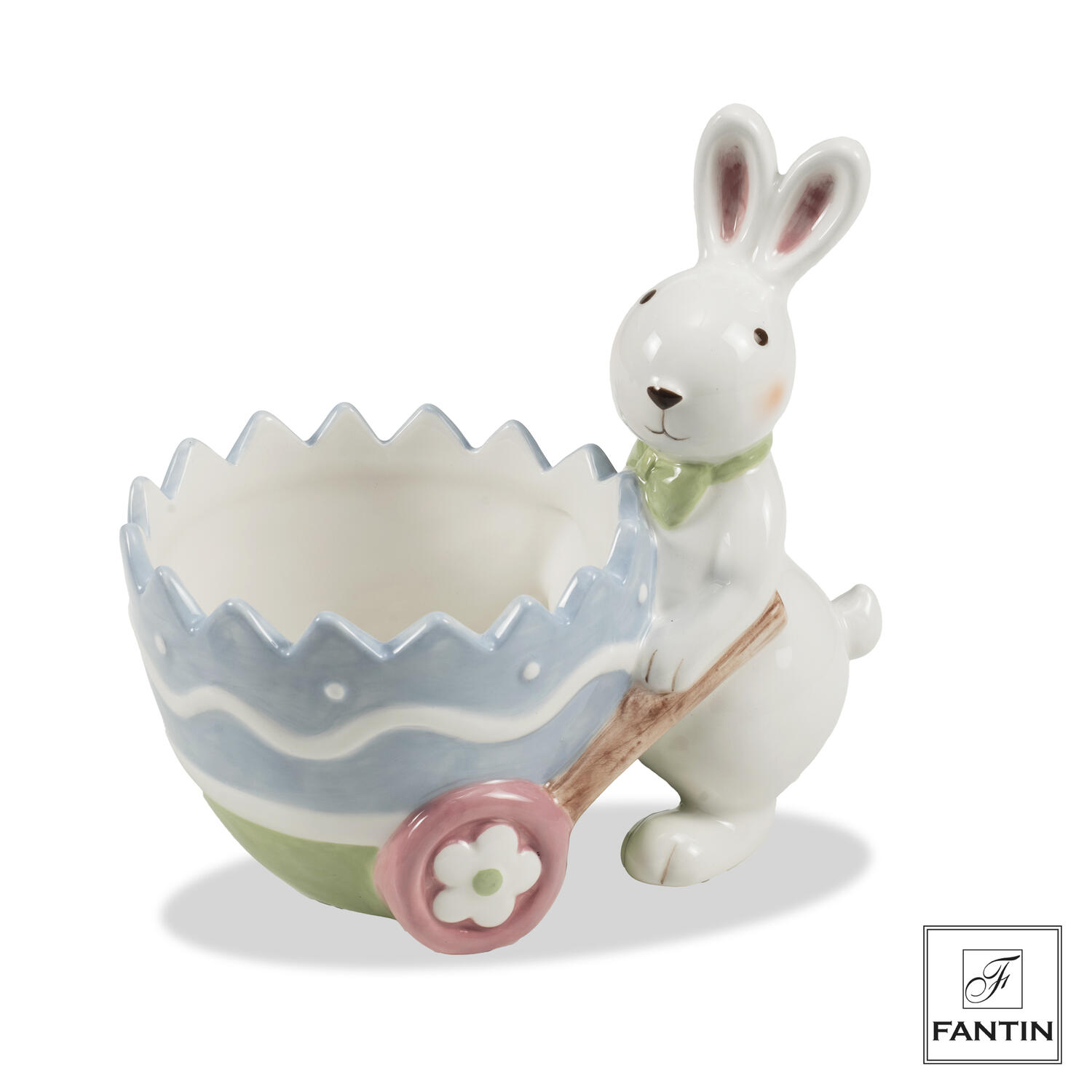 La Ciotola in Ceramica Coniglio con Carriola Fantin (Cod. 60828) è un delizioso complemento decorativo perfetto per creare un’atmosfera pasquale dolce e accogliente.
