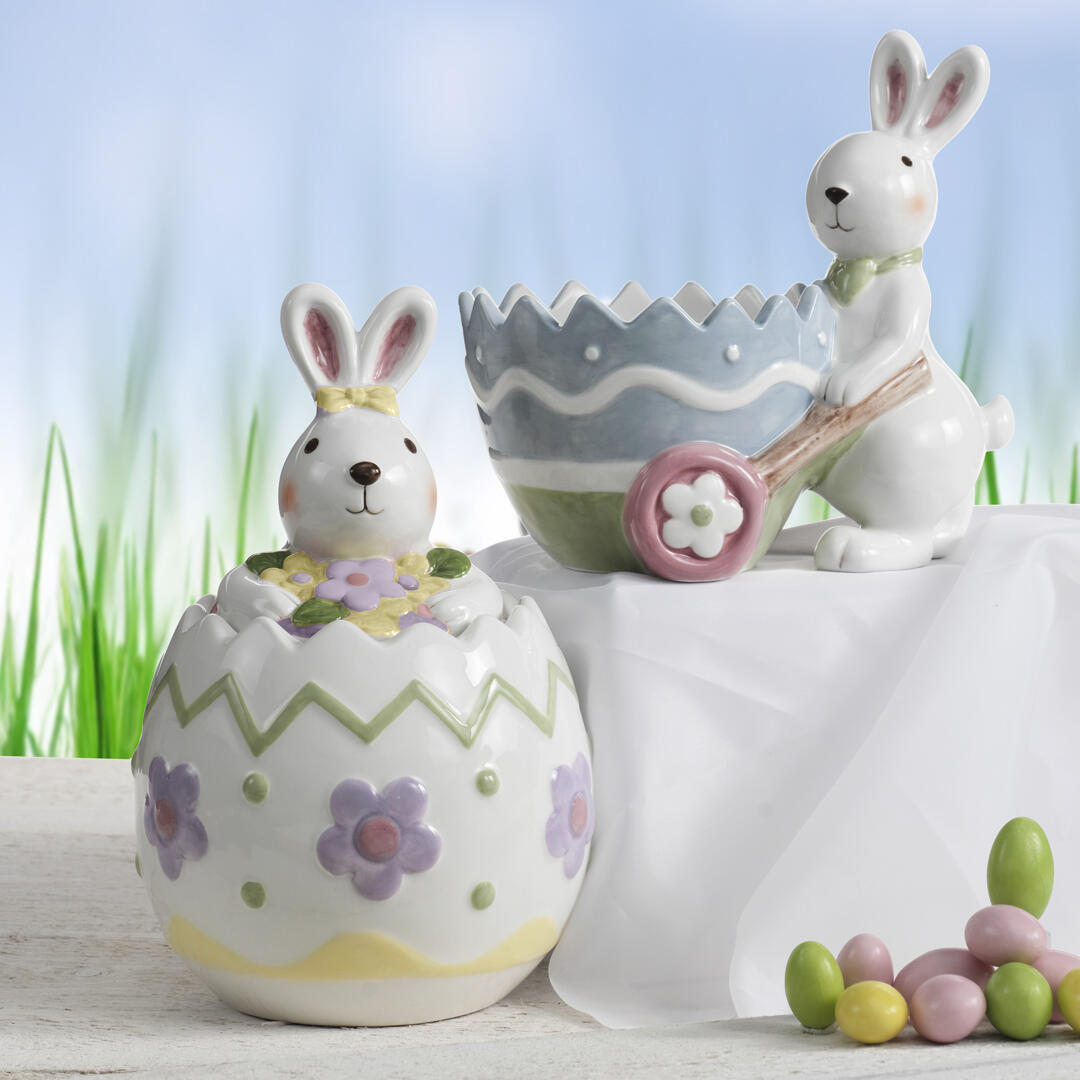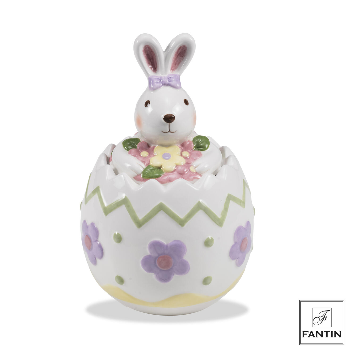 La Scatola in Ceramica con Coperchio Coniglio Fantin (Cod. 60602) è un raffinato complemento decorativo perfetto per arricchire la casa durante il periodo pasquale e primaverile.