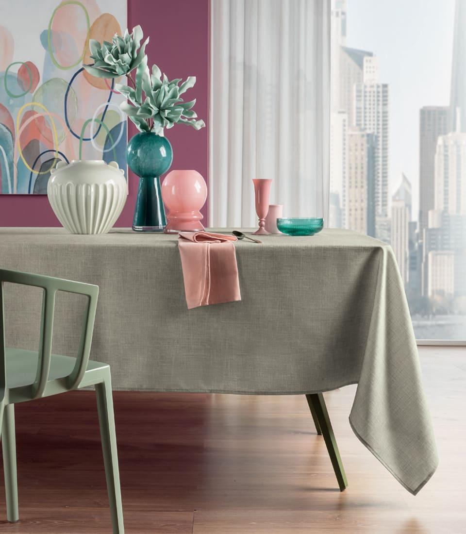 La tovaglia Salvia è realizzata in filato antimacchia e idrorepellente, pensata per unire praticità ed eleganza nella quotidianità.