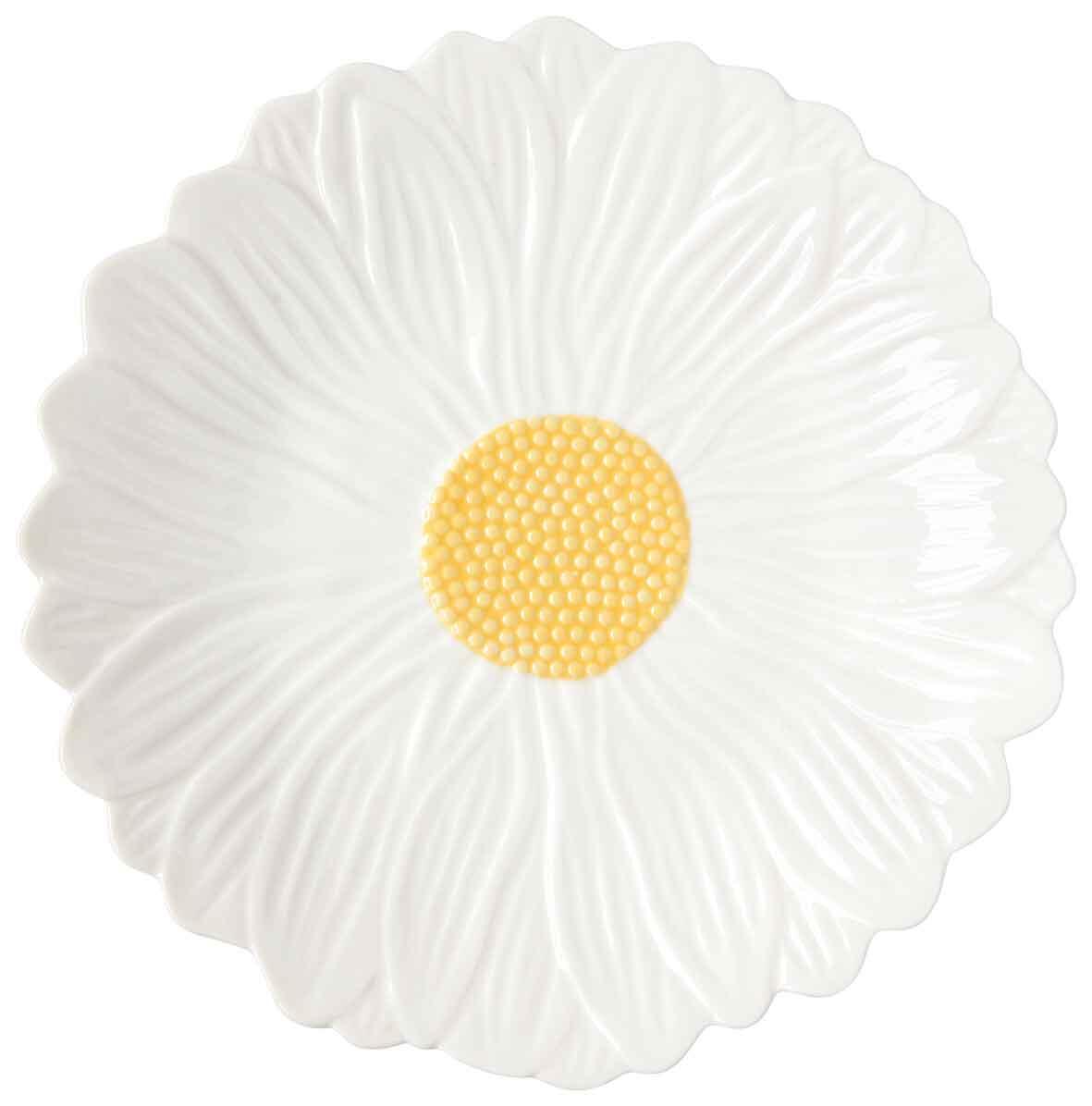 Ogni pezzo è curato nei dettagli, con superficie lucida, centro giallo e petali bianchi che donano un tocco naturale e decorativo alla tavola.
