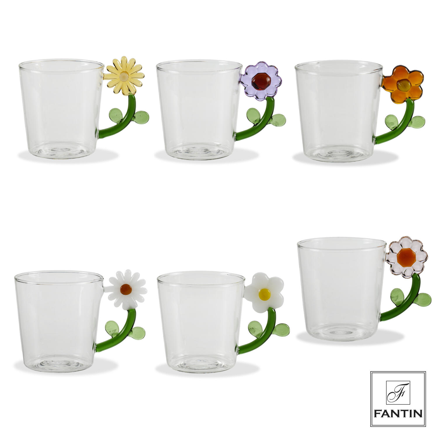 Fantin Argenti - Set 6 bicchieri con manico floreale vetro cm. Ø8,5 h8,8